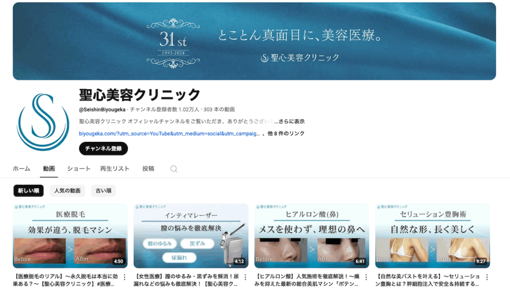 聖心美容クリニック|YouTubeで累計421万回再生を達成