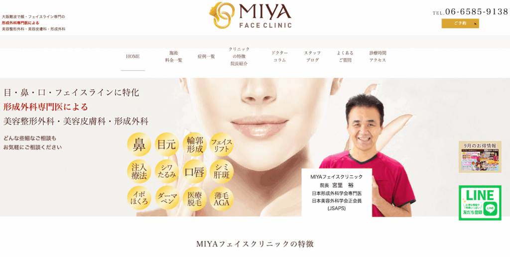 大阪・難波駅直結のMIYAフェイスクリニックは、目・鼻・口・フェイスラインに特化した形成外科・美容外科・美容皮膚科です。顔周りの施術に専門特化することで、高度な技術力と丁寧なカウンセリングを強みに、地域密着型で患者の悩みに応えています。