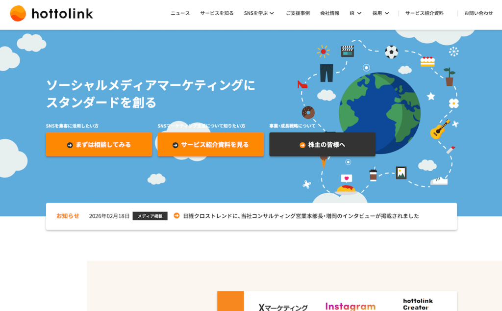 株式会社ホットリンクは、データ分析を軸にSNSマーケティングを支援する企業です。膨大なソーシャルデータをもとに市場やユーザーの動向を可視化し、感覚に頼らない戦略設計を行います。