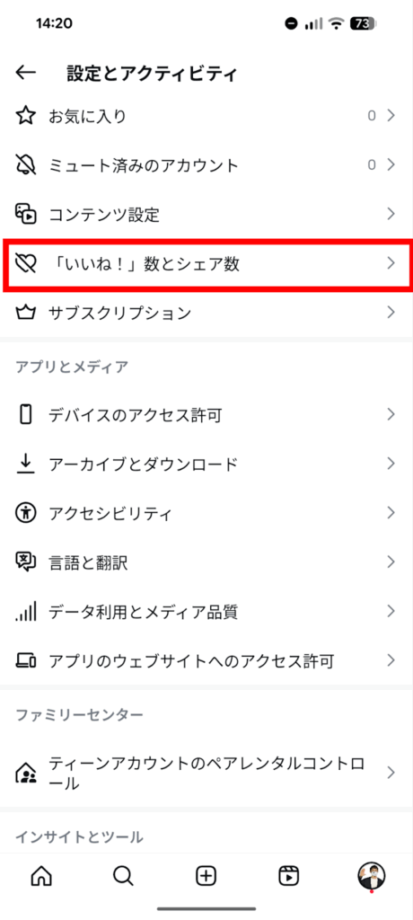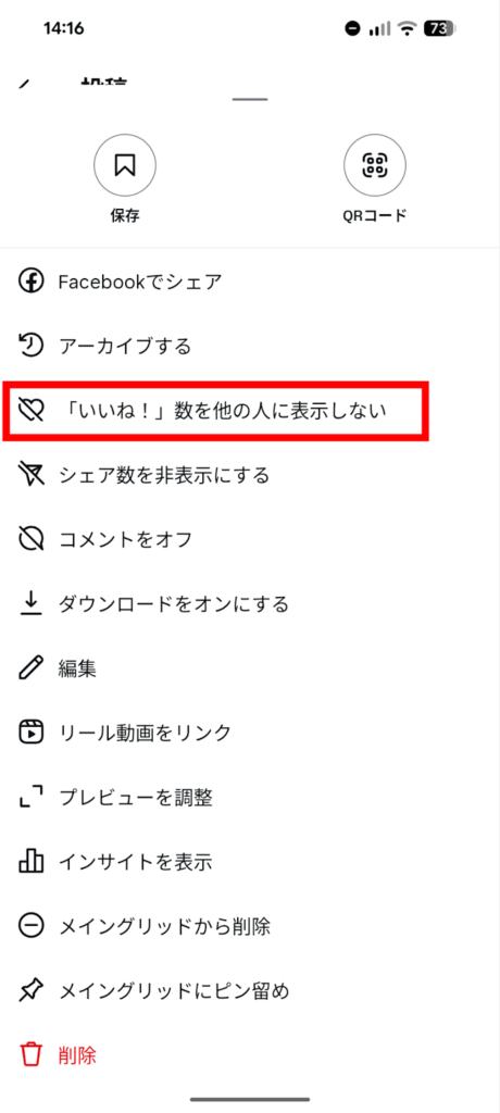 自分の投稿のいいね数を表示/非表示にする設定方法