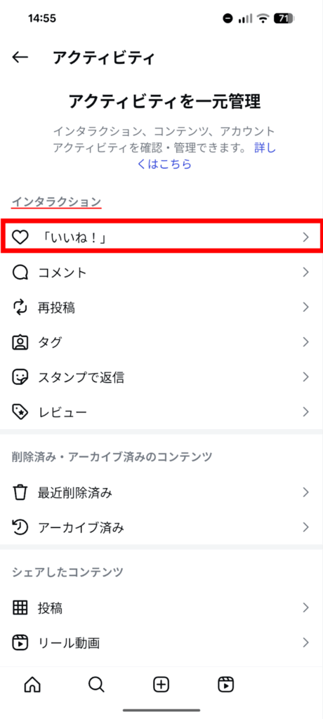 過去に自分がどの投稿に「いいね」をしたか、後から一覧で確認できます。気になる投稿を後で見返したい時や、自分の興味関心の傾向を分析する際に便利な機能です。