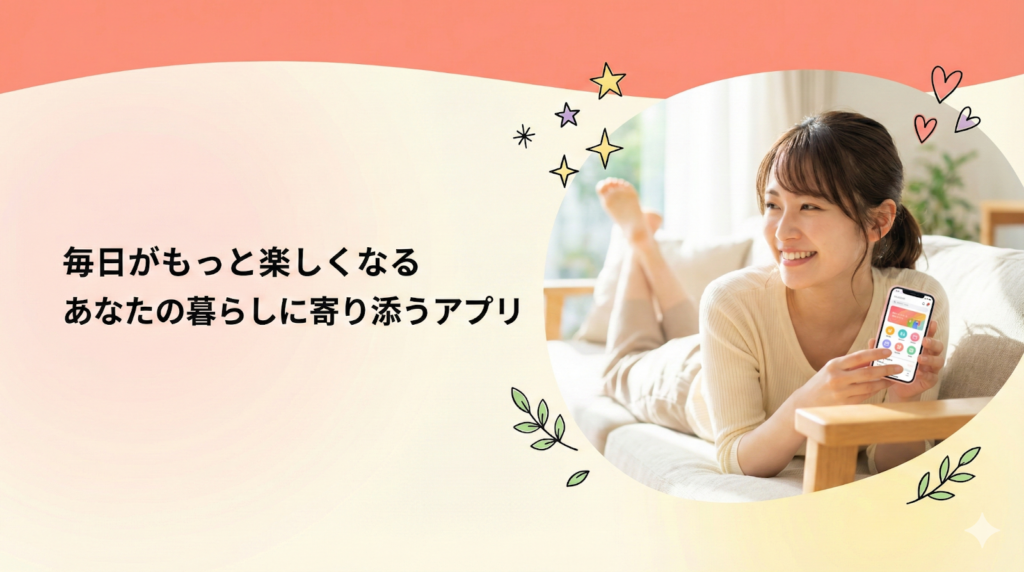 | 明るく親しみやすいBtoC向けヒーロー画像。中央または右側に[商品・サービスのビジュアル]を配置。背景は温かみのあるパステルカラーまたは鮮やかなグラデーション。左側にテキストスペース「[キャッチコピー]」「[サブコピー]」を配置できる広い余白エリア。自然な笑顔のライフスタイル写真、または商品を使用しているシーンを含める。柔らかい照明と明るい雰囲気。親近感と安心感を演出。手描き風のアクセント要素やイラストを添えても可。[〇:〇]のアスペクト比。消費者向けLP、ECサイトに最適。 |