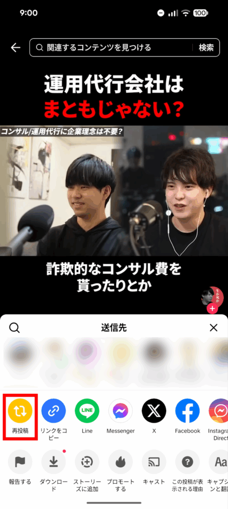 再投稿した動画がフォロワーに表示される範囲は?