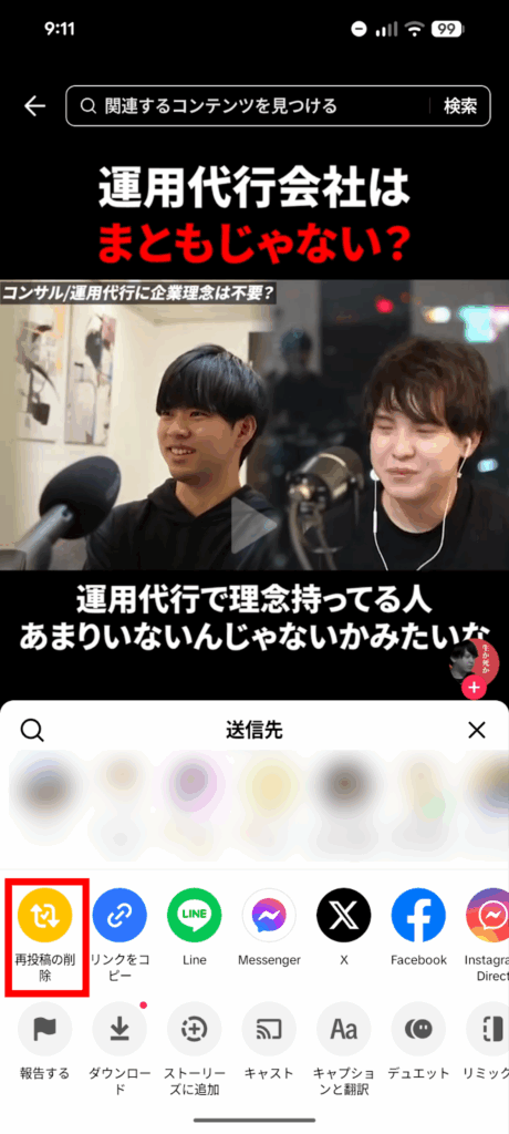 2.「再投稿を削除」をタップ