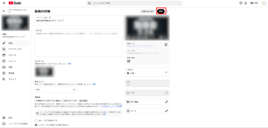 公開設定を変更した後は、保存ボタンをクリックすれば完了です。