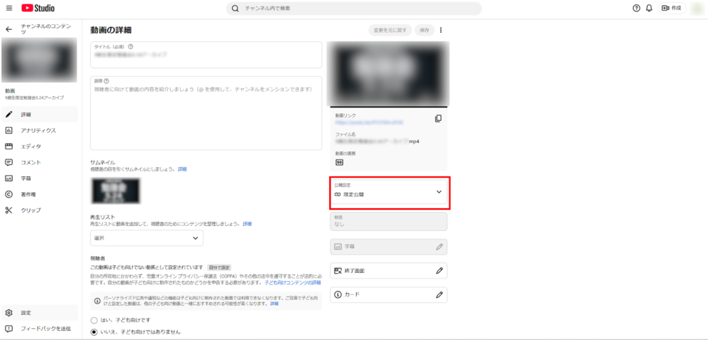 公開設定が「限定公開」「非公開」になっている